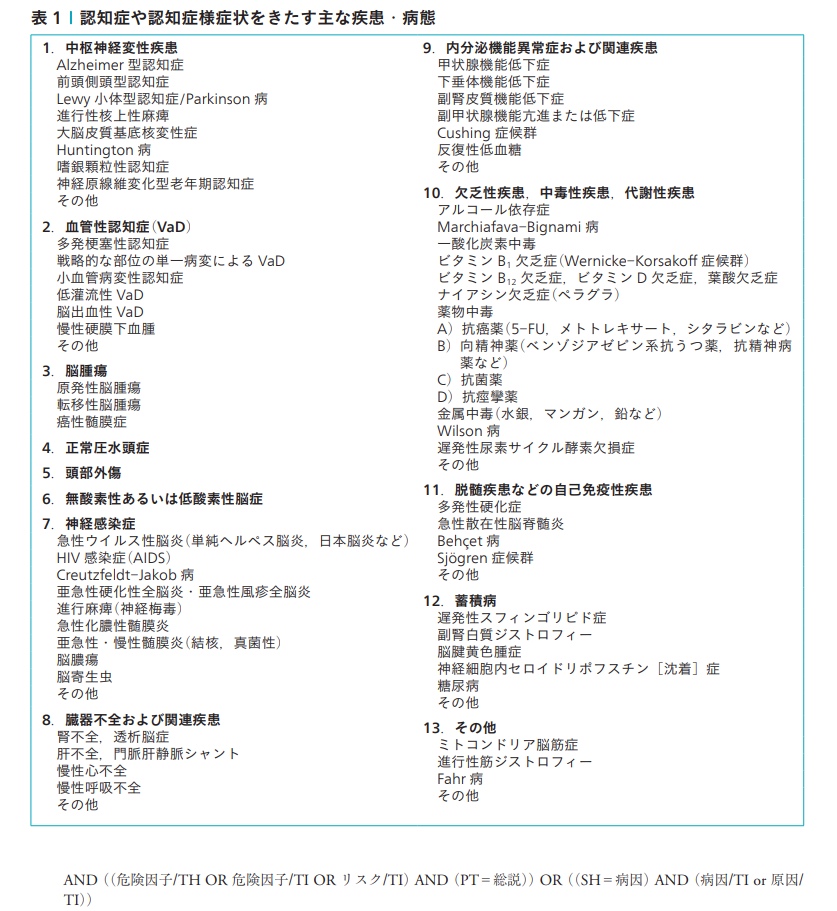 1-2 認知症や認知症様症状をきたす主な疾患・病態
